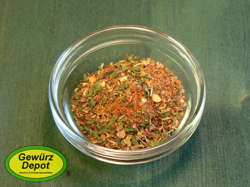 Zutaten: Paprika, Knoblauch, Thymian, Pfeffer, Chili, Basilikum, Zwiebel, Oregano, Petersilie [kann Spuren enthalten von Senf und Sellerie]