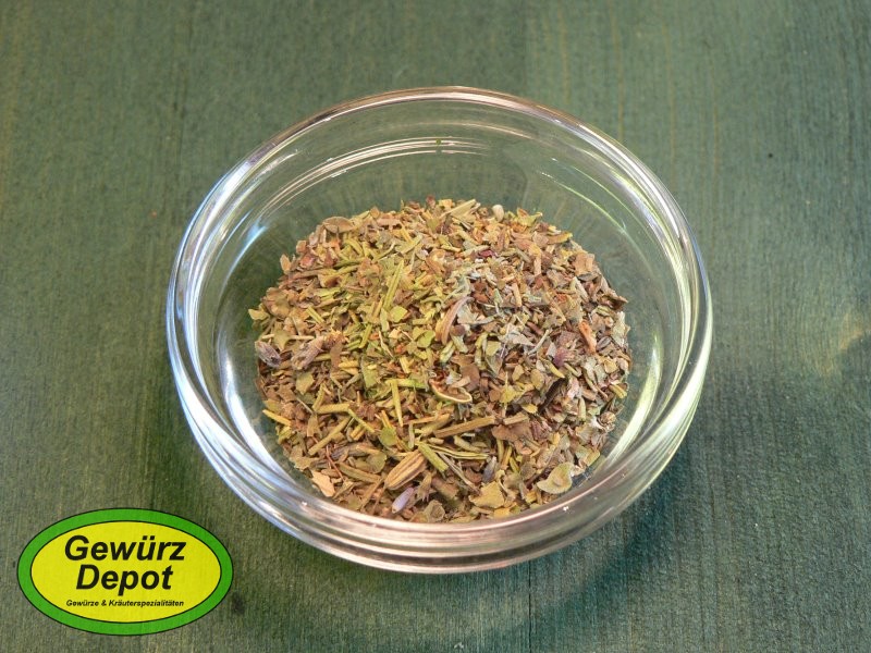 Zutaten: Basilikum, Oregano, Thymian, Salbei, Zwiebeln, Paprika, Minze [kann Spuren enthalten von Senf und Sellerie]
