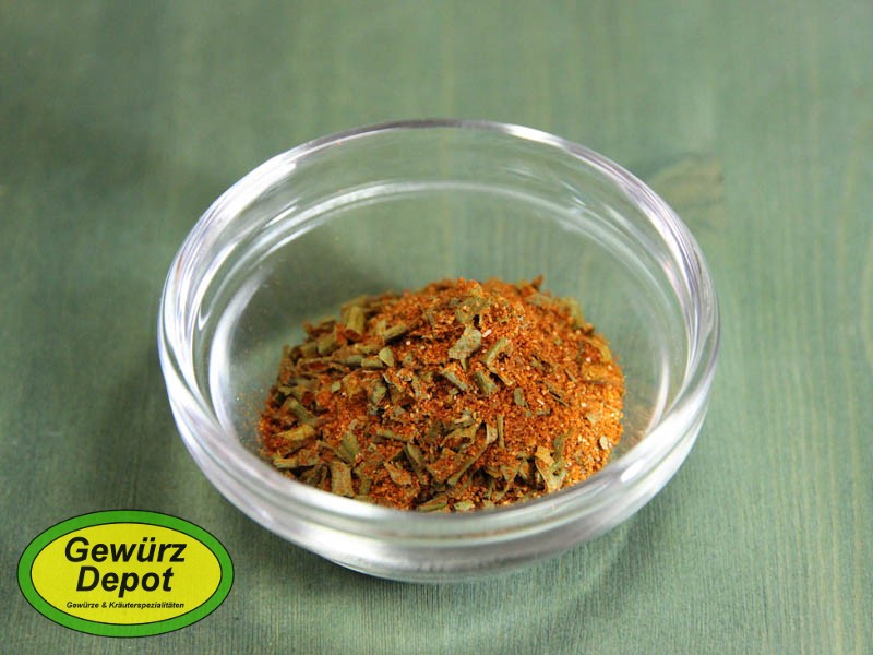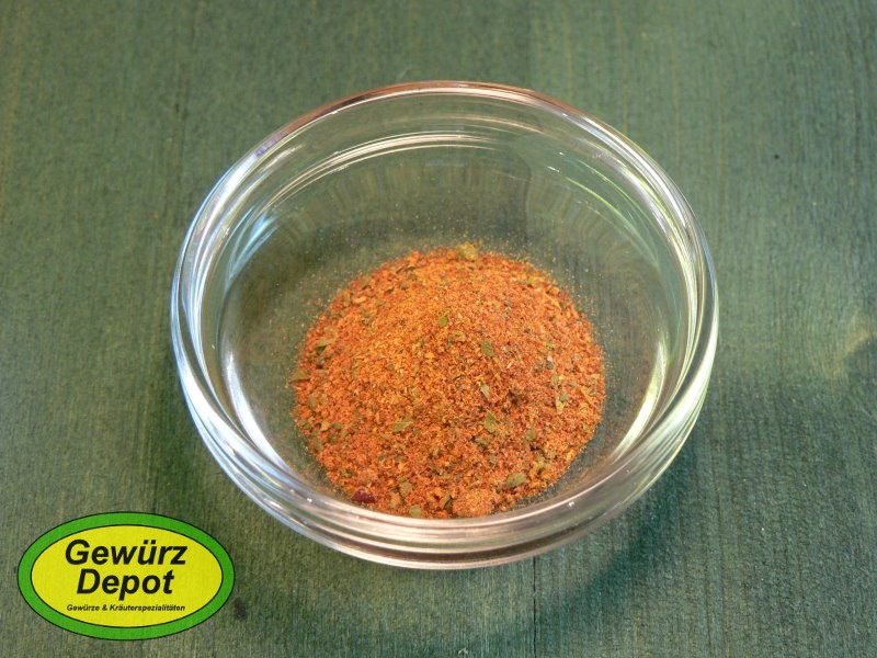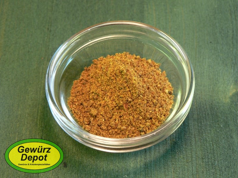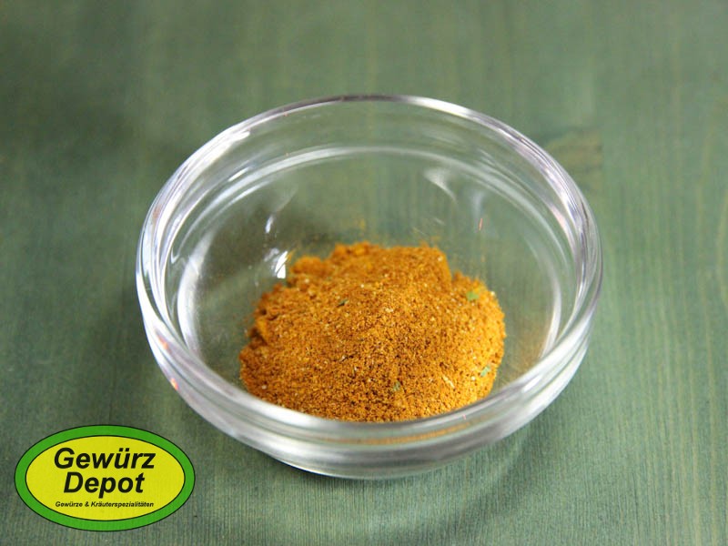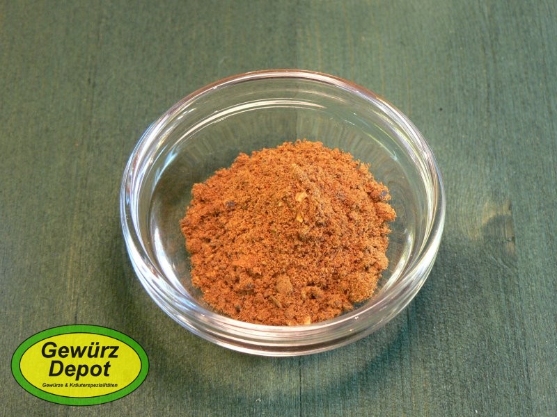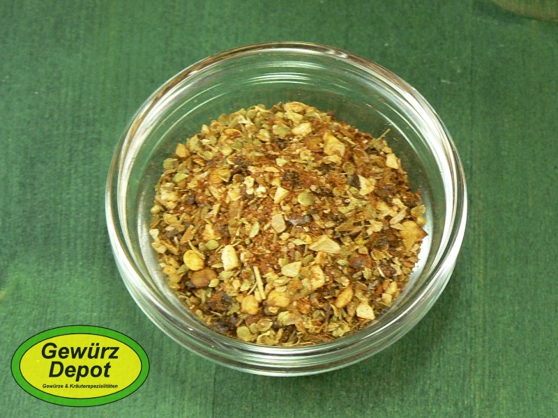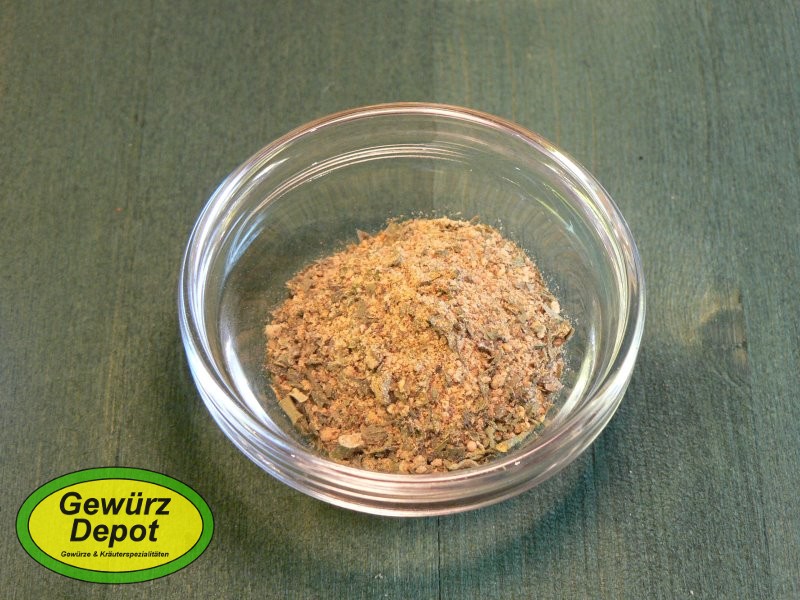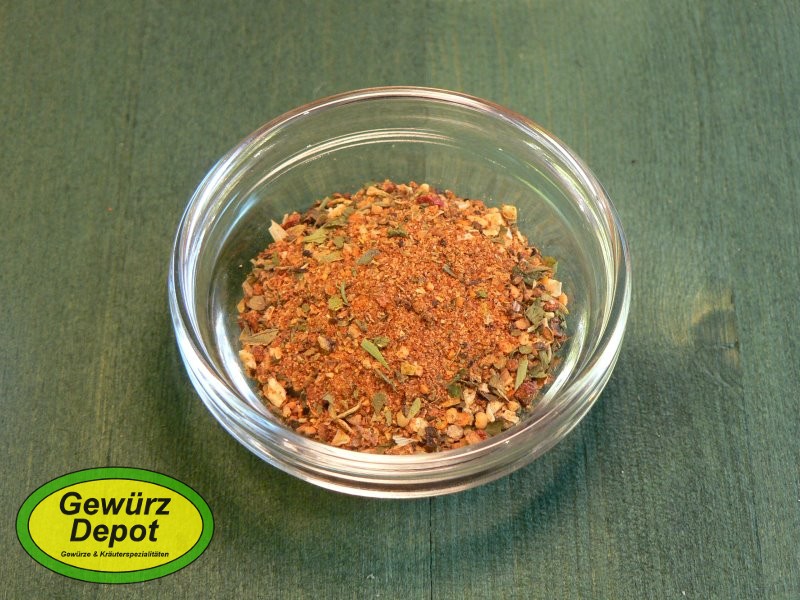 Zutaten: Meersalz, Koriander, Paprika, gelbe Senfsamen, Chili, Zwiebeln, Kreuzkümmel, Knoblauch, Oregano, Thymian, schwarzer Pfeffer, Majoran