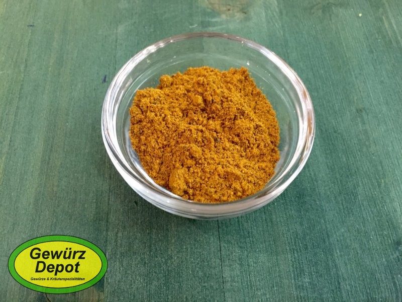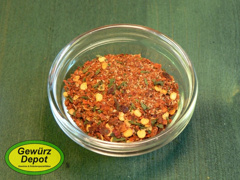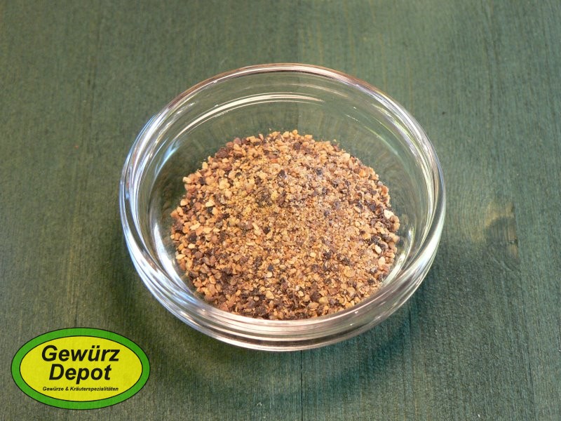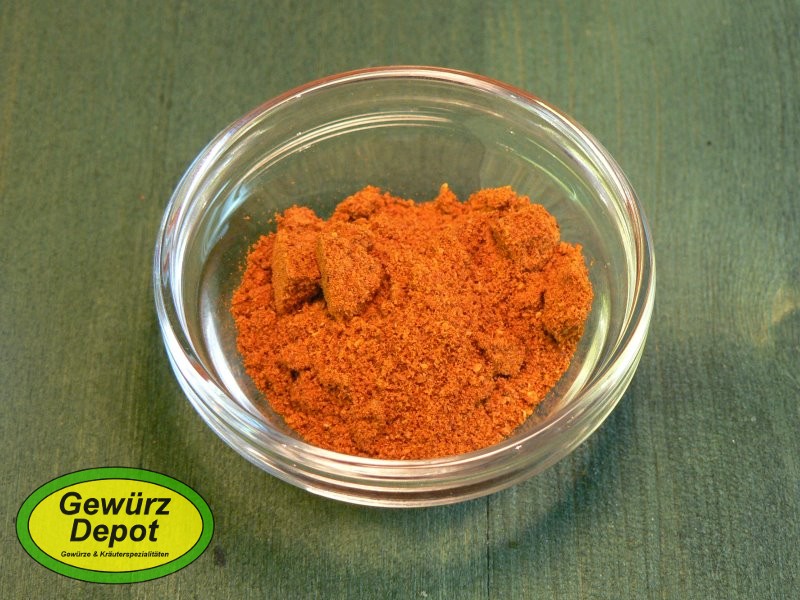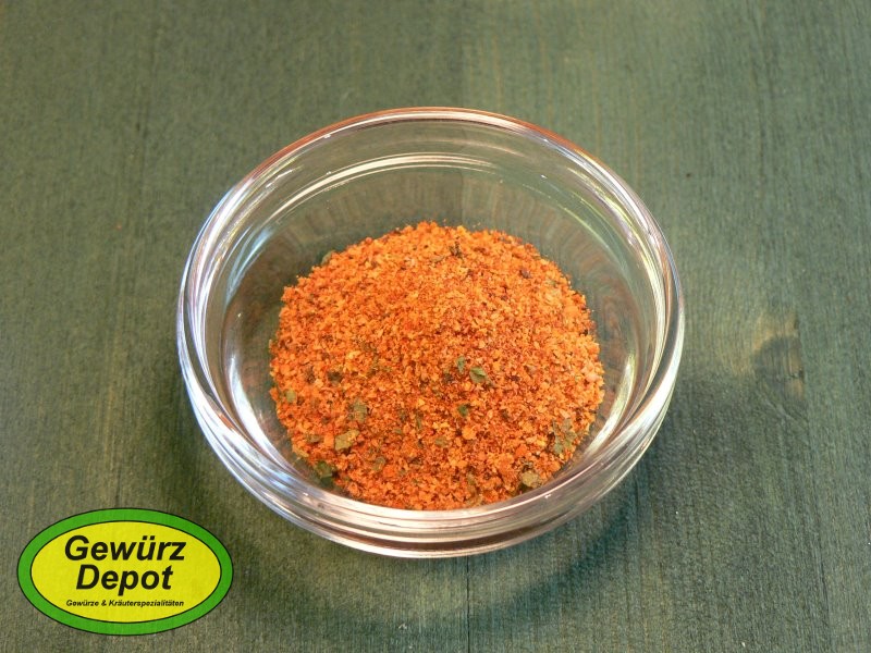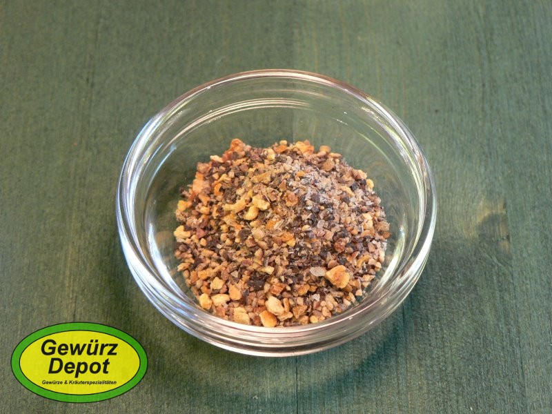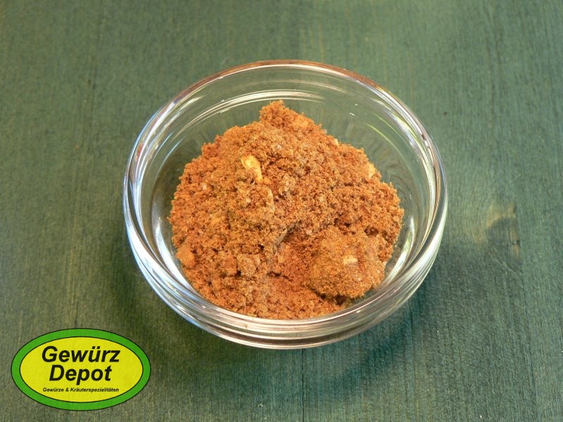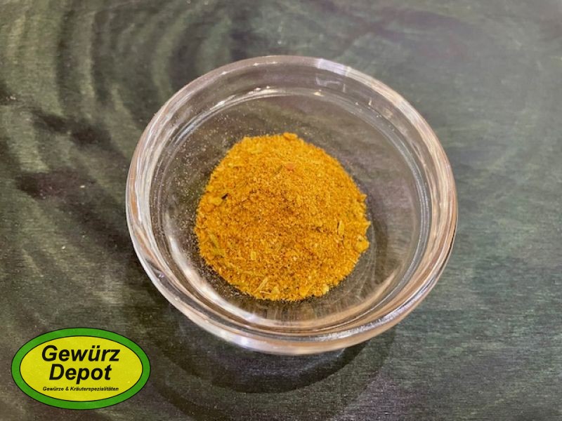 Zutaten: Meersalz, Koriander, Paprika, gelbe Senfsamen, Chili, Zwiebeln, Kreuzkümmel, Knoblauch, Oregano, Thymian, schwarzer Pfeffer, Majoran