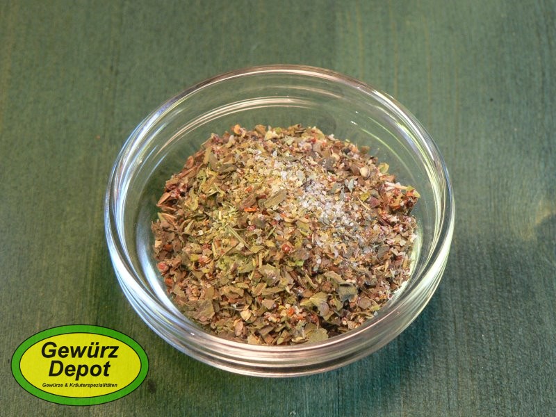 Gewürzzubereitung griechischer Art für die Zubereitung von Lamm, Hühnchen,Kartoffeln, Salatdressings oder Fischgerichten.