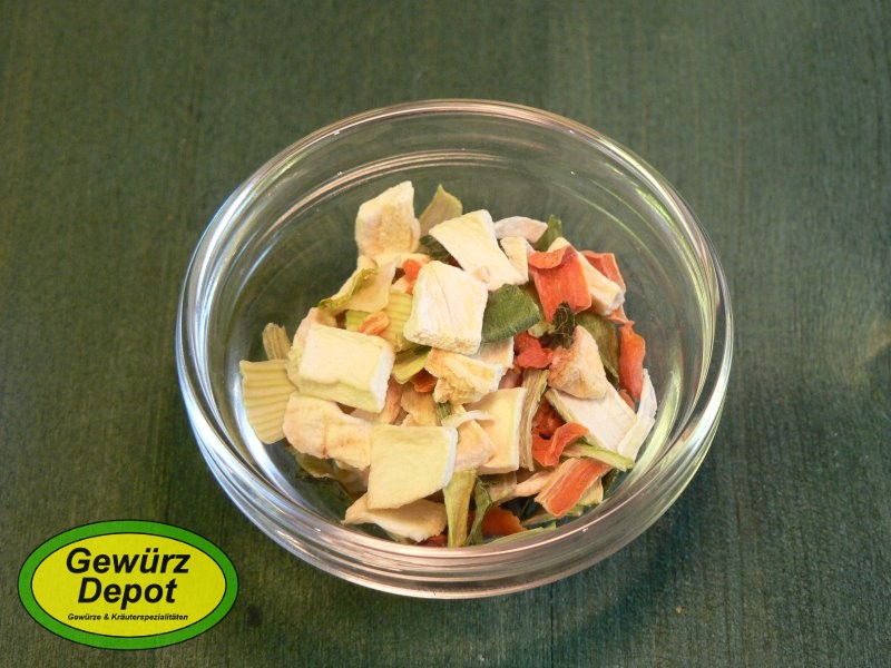Zutaten: Schnittlauch, Petersilie, Karotte, Zwiebel, Paprika, Dill, Pastinake, Liebstöckel [kann Spuren enthalten von Senf]