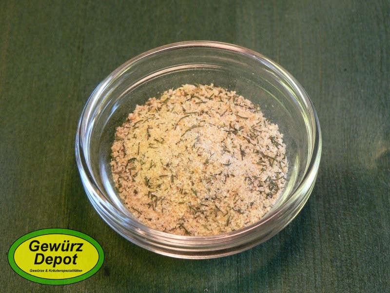 Zutaten: Meersalz, Knoblauch, Zwiebel, Pfeffer, Dillspitzen, Zitronensäure; Verw.: für Dips und Kräuterquark