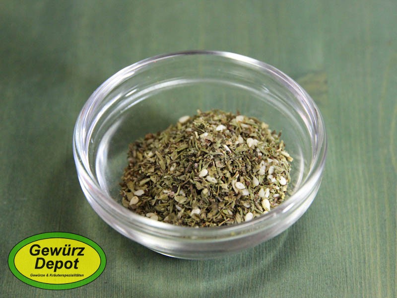 Zutaten: Sesamsaat, Sumachfrüchte gemahlen, Thymian, Oregano (kann Spuren von Sellerie und Senf enthalten)