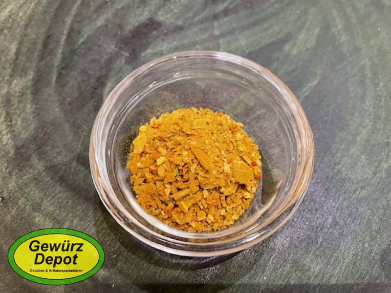 Zutaten: Paprika, Kurkuma, Knoblauch, schwarzer Pfeffer, Zwiebeln, Petersilie, Safran [kann Spuren enthalten von Senf und Sellerie]