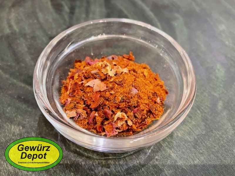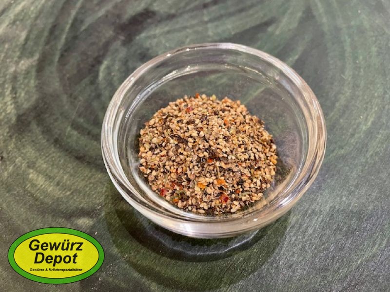 Zutaten: weißer Pfeffer, Chili (Ancho, Cayenne und Birdeyes), Oregano, Thymian, Zwiebel, Knoblauch schwarzer Pfeffer