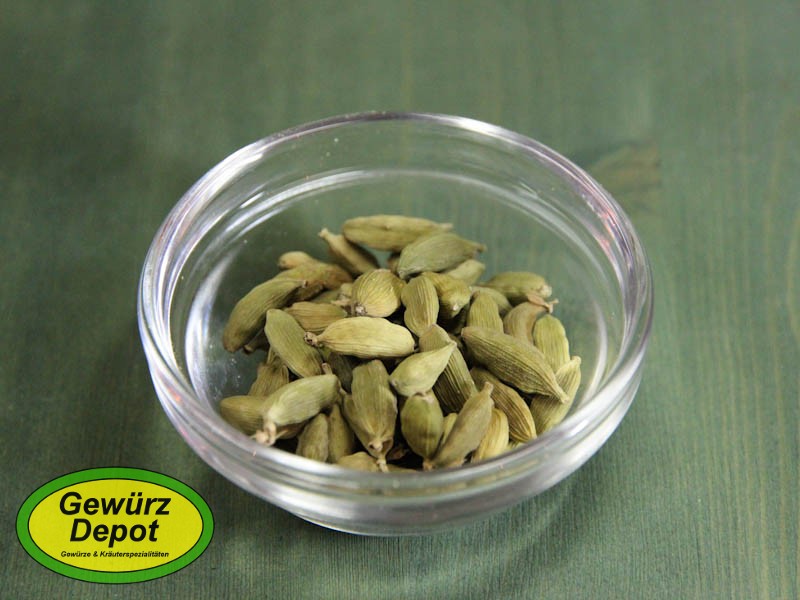 Kardamom-Früchte enthalten in ihrer Schale die Kardamom-Saatkörner. Die getrockneten grünen Früchte werden vor allem zur Kaffeezubereitung nach arabischer Art verwendet.