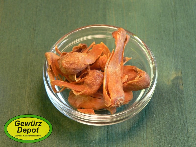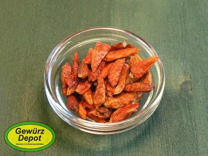 Rote aromatische Chilischoten mit einer mittleren Schärfe. Durch den feinen, dünnen Schnitt (ca. 2-4cm Länge) eignet sich dieses Gewürz auch als Dekoration