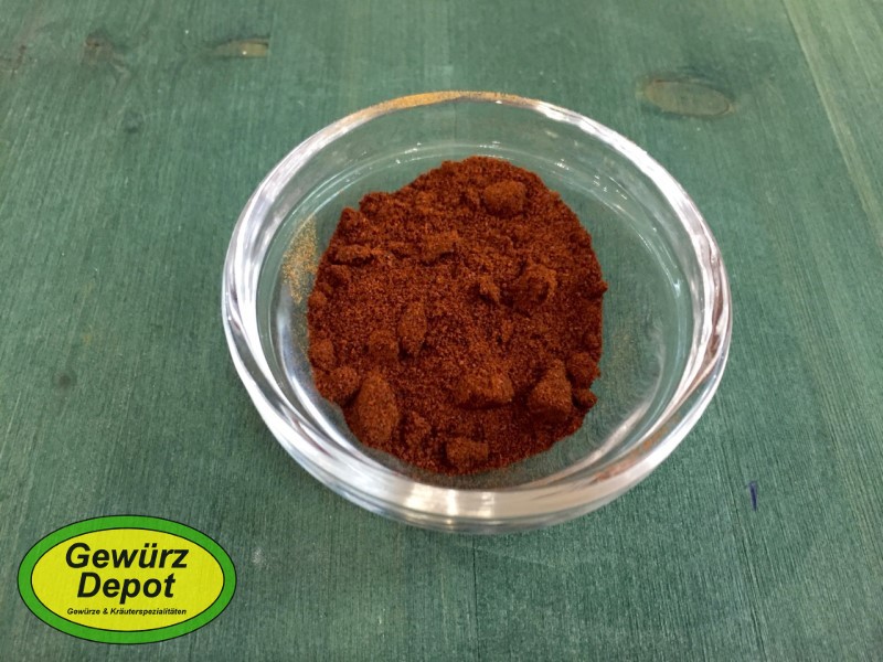 Schärfegrad 4-5 - Chili-Ancho ist ein dunkelbraunes Pulver aus der weniger scharfen, sehr aromatischen, mittelamerikanischen Ancho-Chili-Frucht, das typische Gewürz im mexikanischen "Chili con carne".