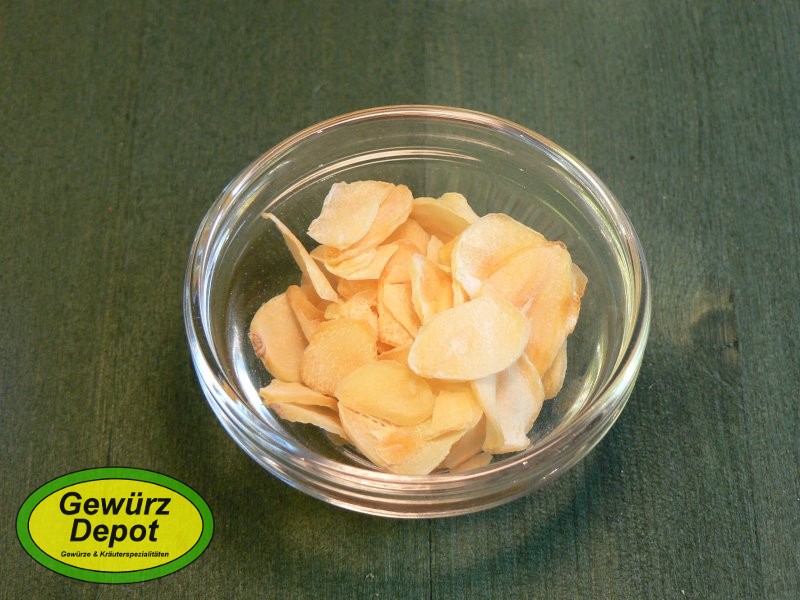 Knoblauchscheiben eignen sich hervorragend für italienische Pasta oder Pesto, Bratkartoffeln, Fleisch, Suppen, Gemüse, zum Einlegen in Öl/Essig.