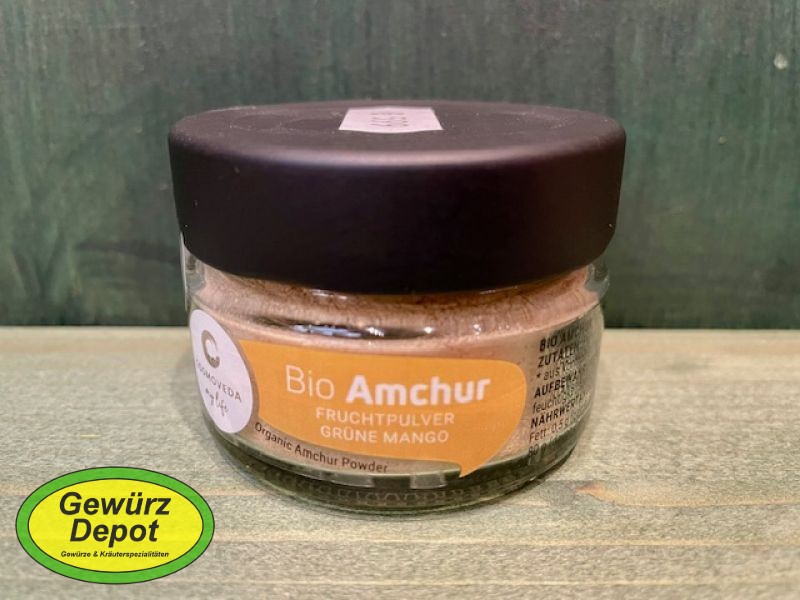 Mangopulver ist eine Spezialität der nordindischen Küche und schmeckt scharf-säuerlich. Es wird oft als Säuerungsmittelersatz für Tamarinde oder Sumach verwendet. Es passt gut in Pfannengemüse, zu Auberginen, Blumenkohl, Hülsenfrüchten, Kartoffeln - Fleisch soll durch das Pulver etwas zarter werden.