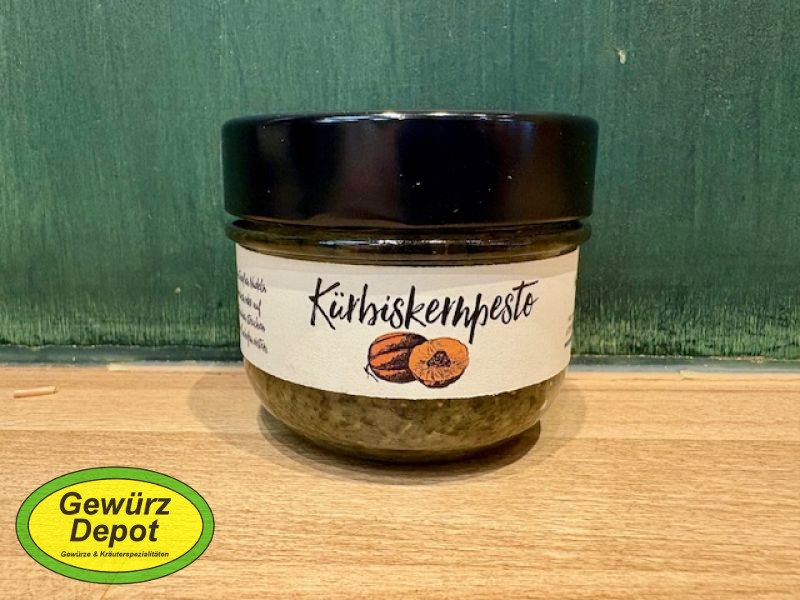 Kürbiskernpesto aus der Wonnegauer Ölmühle passt hervorragend zu Nudeln, Salaten, Suppen und als Brotaufstrich.